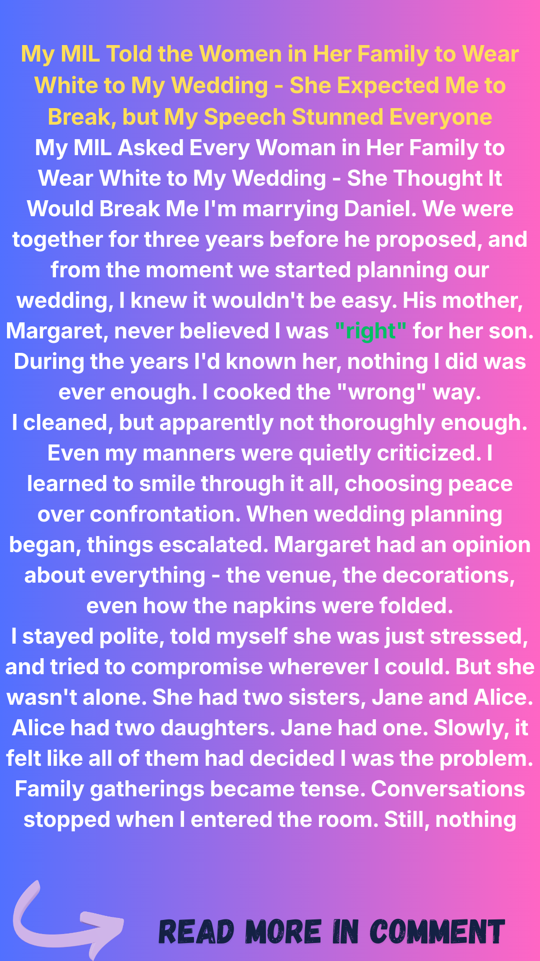 My MIL Told Everyone to Wear White—So I Changed the Script During My Wedding Speech