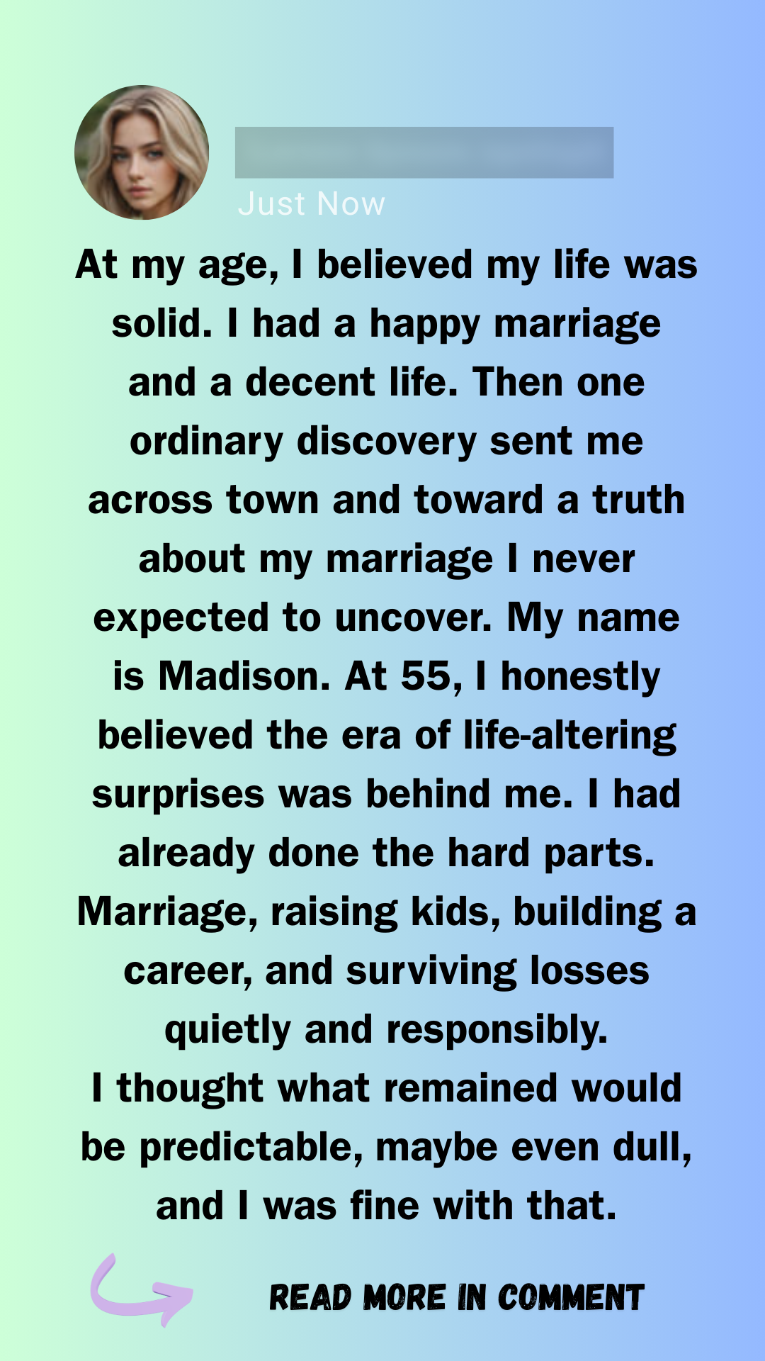 My name is Madison. At 55, I honestly believed the era of life-altering surprises was behind me.