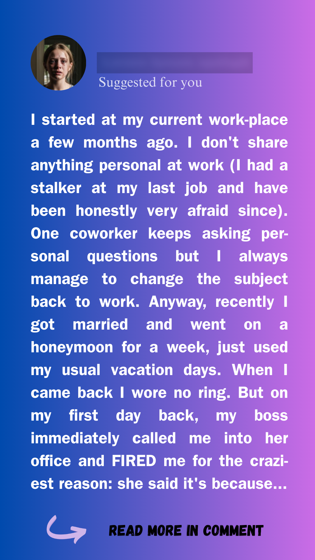 A week after my wedding and a dreamy honeymoon, I returned to work feeling on top of the world. I was ready to start fresh. Instead, I was fired for a reason I never imagined could cost me everything.