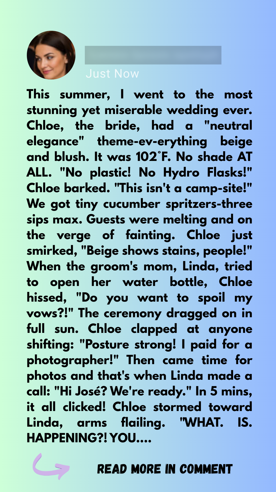 She Banned Water Bottles at Her Wedding for “Aesthetic” — The Groom’s Mom Had Other Plans in 102°F Heat