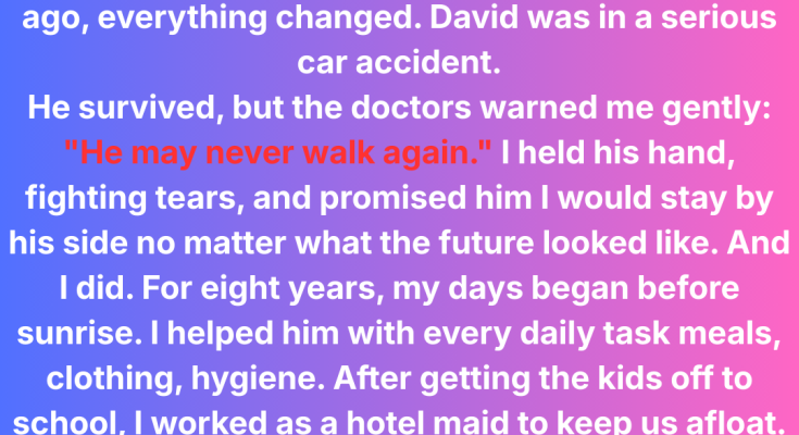 After eight years of sacrificing everything to care for my paralyzed husband, I watched him take his first steps with tears of joy streaming down my face. One week later, those same hands that had fed him, bathed him, and held him through his darkest moments were trembling as I held divorce papers and learned the devastating truth.