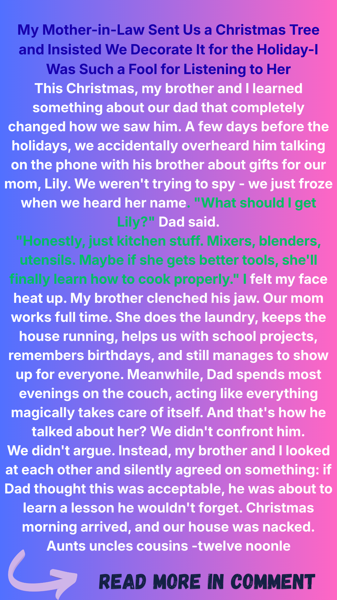 By morning, it had gone viral. Comments flooded in from people sharing their stories of controlling relatives and holiday disasters. Local news wanted interviews. My phone wouldn’t stop buzzing with notifications.