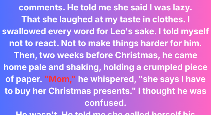 I sat there at the kitchen table with that list in my hands, staring at words that never should have been spoken to a child. Leo watched my face closely. His eyes were wide, as if he was bracing for impact.