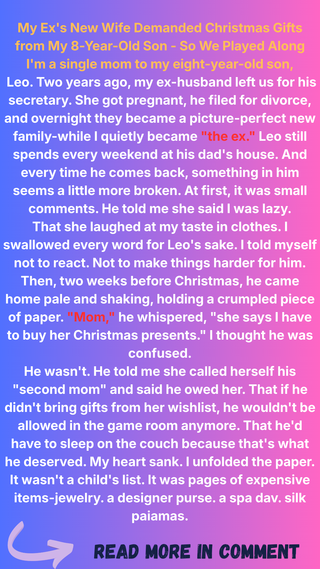 My Ex’s Wife Demanded a Christmas Gift from My 8-Year-Old—So We Played Along.