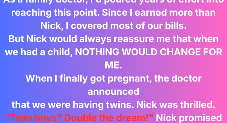 My husband swore he’d take care of everything if I gave him a baby. He said I wouldn’t have to sacrifice my career. Then the twins came, and suddenly, I was “unrealistic” for wanting to keep the job that kept us afloat. He demanded I quit my job, and I agreed… but with one condition.