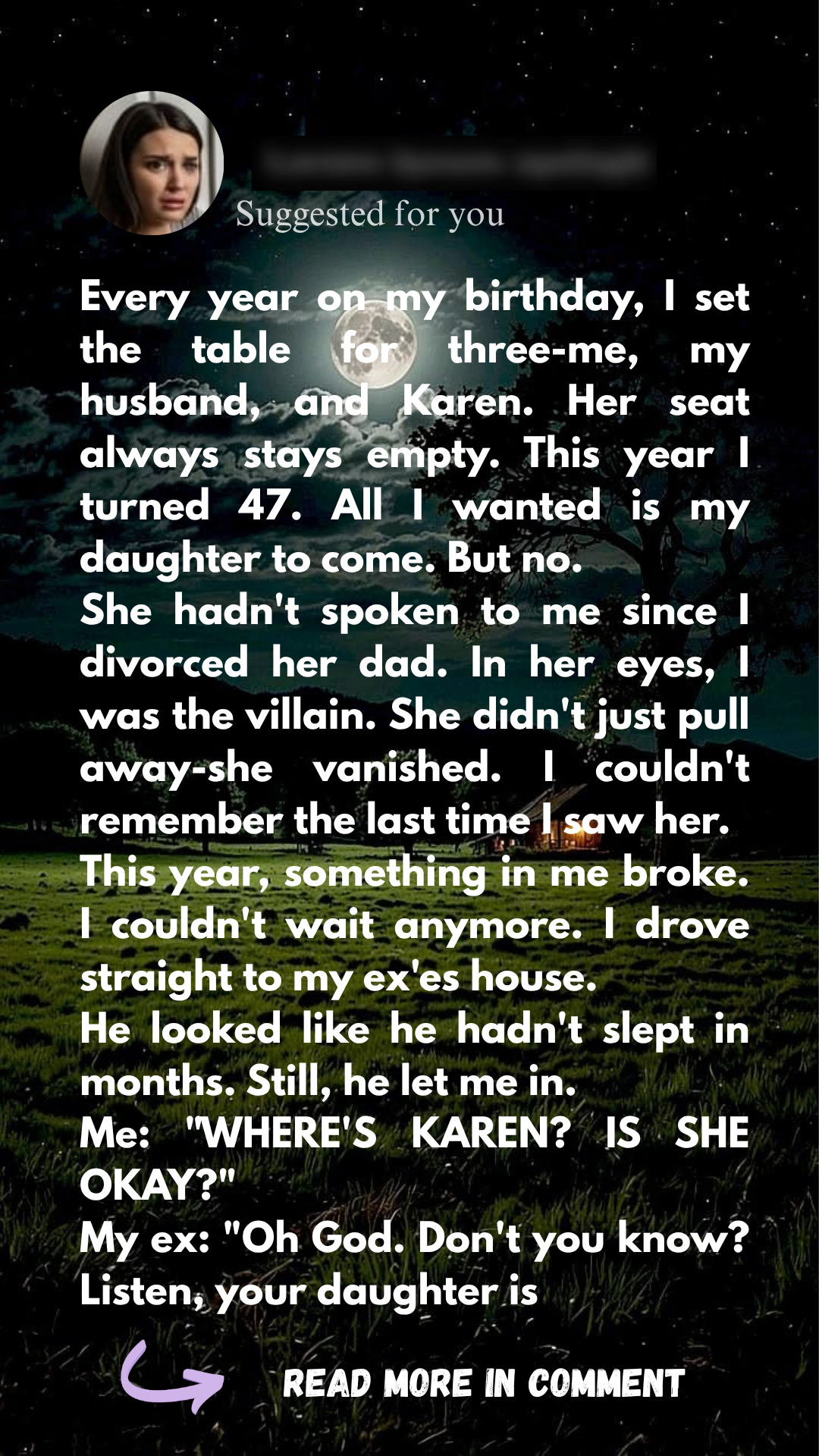 On my 47th birthday, I set the table for three — though one seat remained painfully empty. It had been two years since my daughter, Karen, last spoke to me. After so many missed birthdays, the silence felt like a wall I couldn’t climb.