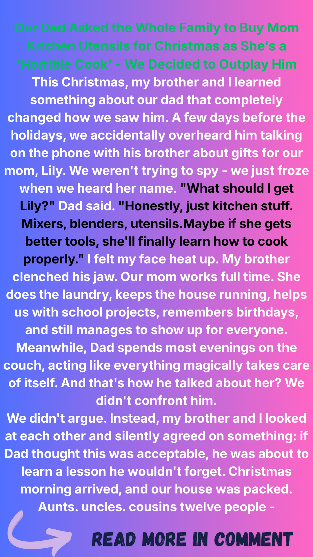 When my brother and I overheard Dad calling Mom “lazy” and mocking her cooking, we knew we couldn’t let it slide. What started as a Christmas gift list turned into a clever plot to teach him a lesson he’d never forget.
