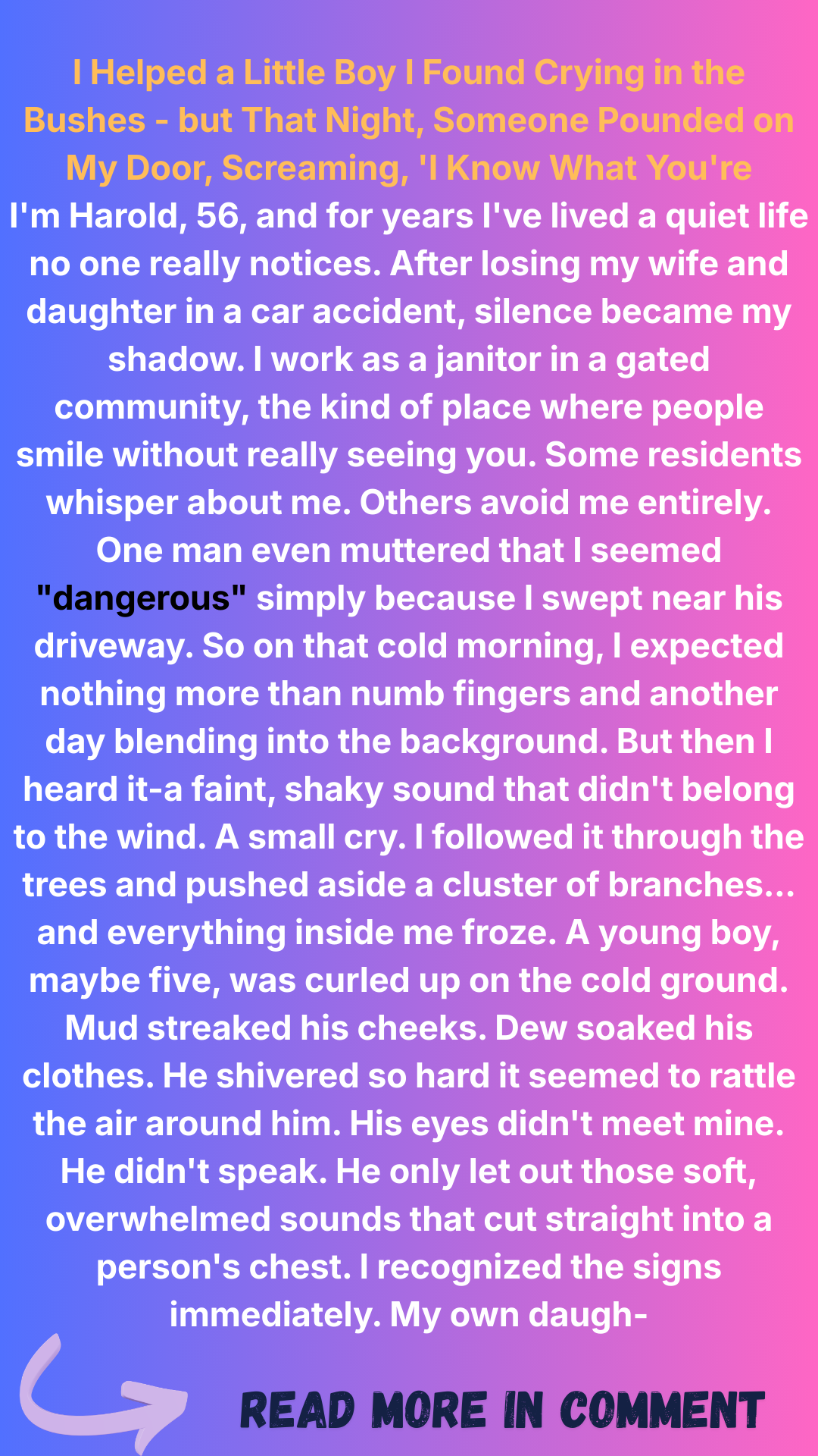 I Helped a Little Boy Crying in the Bushes—That Night, Someone Pounded on My Door Screaming My Name