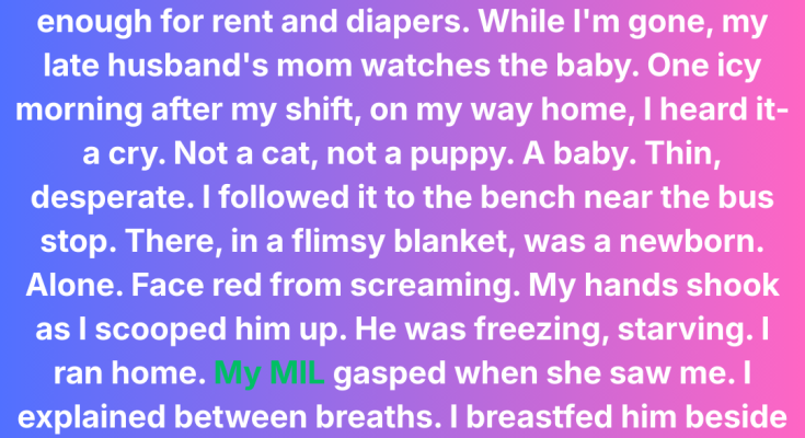 “An abandoned baby,” I gasped, breathless. “On a bench. Completely alone. He was freezing. I couldn’t simply—”