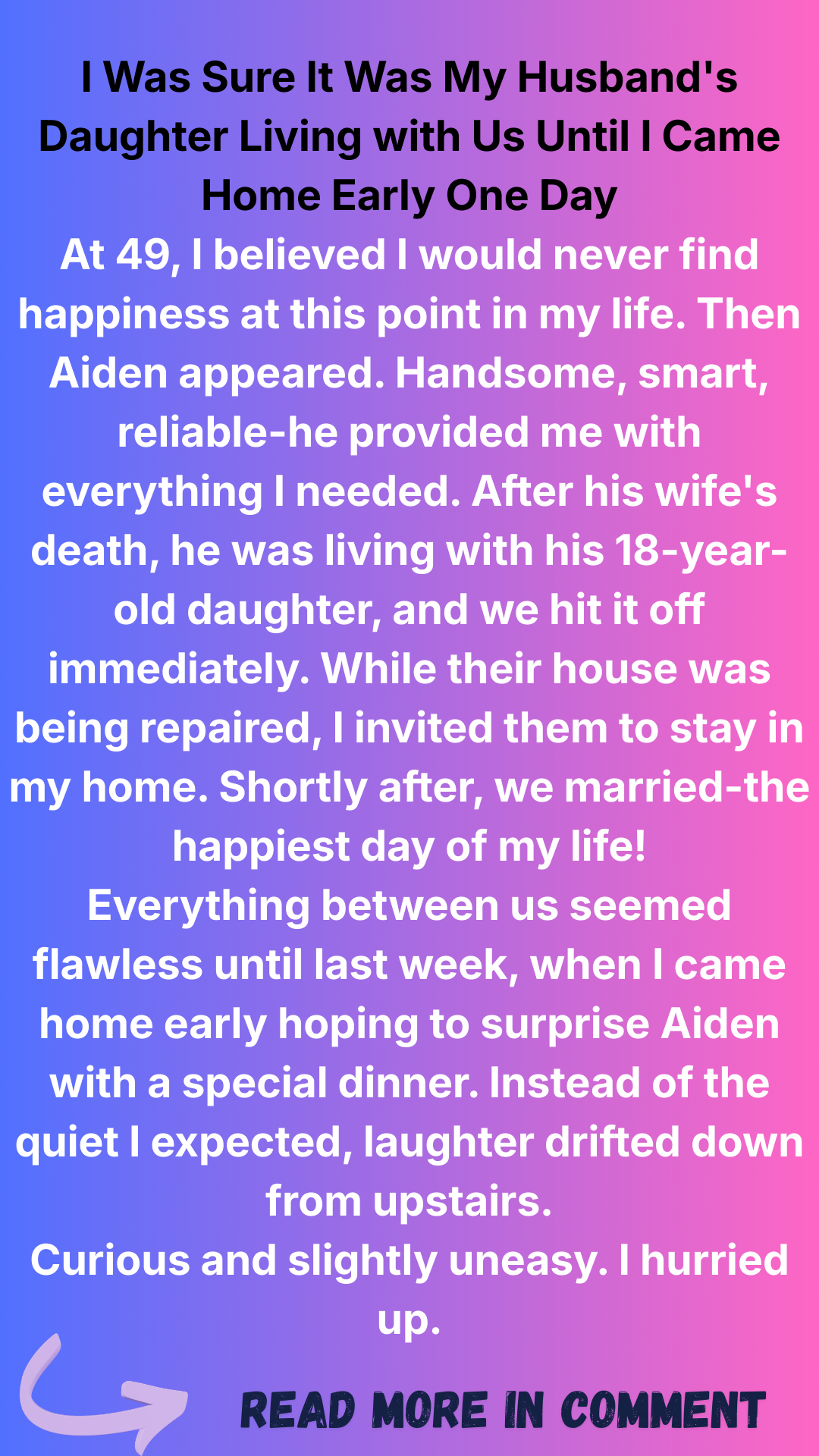 For years, I thought I’d never find love, until I met Aiden. But one quiet evening, a sound from upstairs revealed the truth: my charming husband and his “daughter” weren’t who they claimed to be.