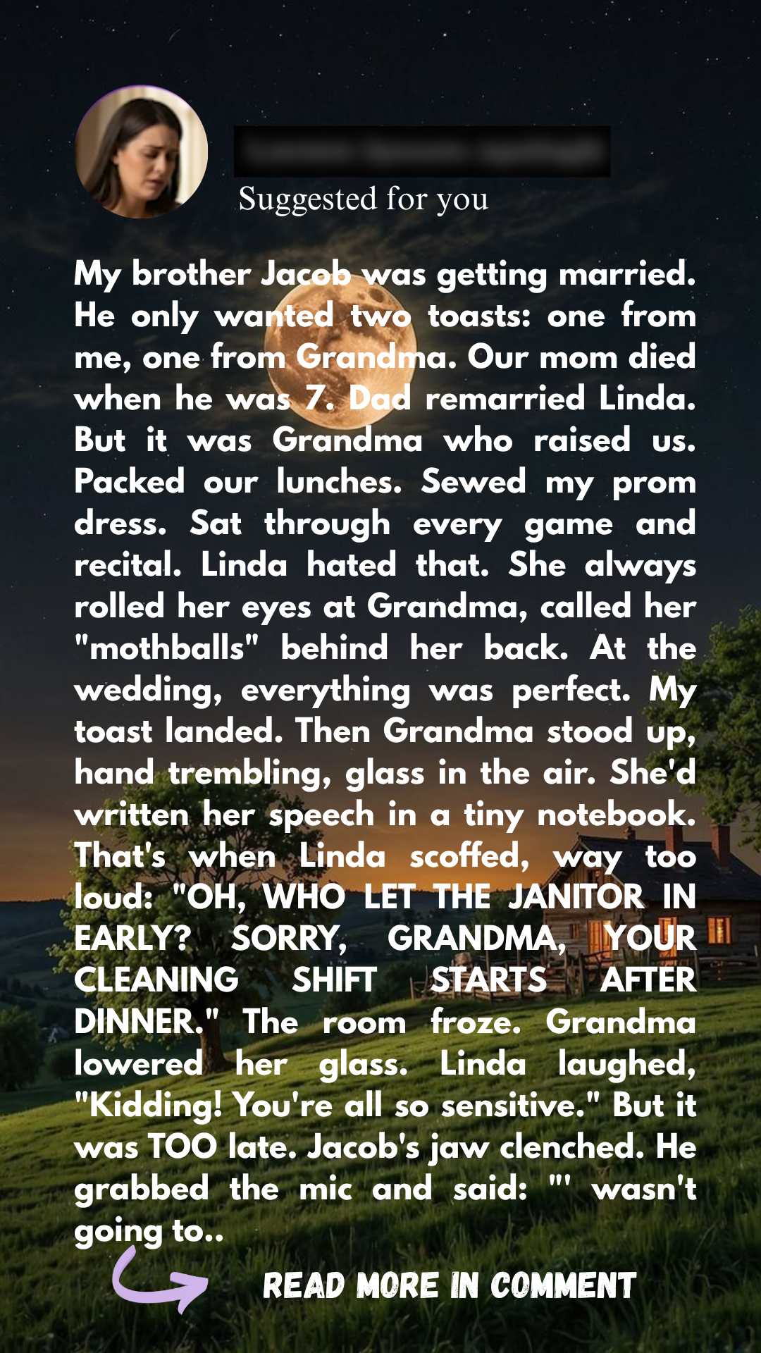 When Jacob got engaged to Emily, Grandma helped with the wedding planning and even bought the bride a stunning set of pearls. At the reception, everything seemed perfect — music, lights, laughter. Then it was time for Grandma’s speech. As she stood at the mic, filled with heartfelt emotion and pride, Linda interrupted with a derisive laugh and a cutting insult, saying Grandma looked like a janitor who showed up early. The entire room froze.