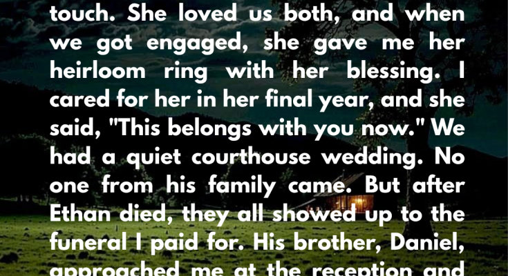 I was stunned. At my husband’s funeral, they wanted the ring — the one that Margaret gave me with love — for their daughter‑in‑law someday. They said it “should stay in the bloodline,” even though they had treated Ethan as if he wasn’t part of theirs.
