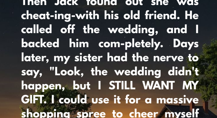 “Clara,” I said carefully. “You can’t be serious. You’re asking for the gift after you cheated on Jack and ruined the wedding?”
