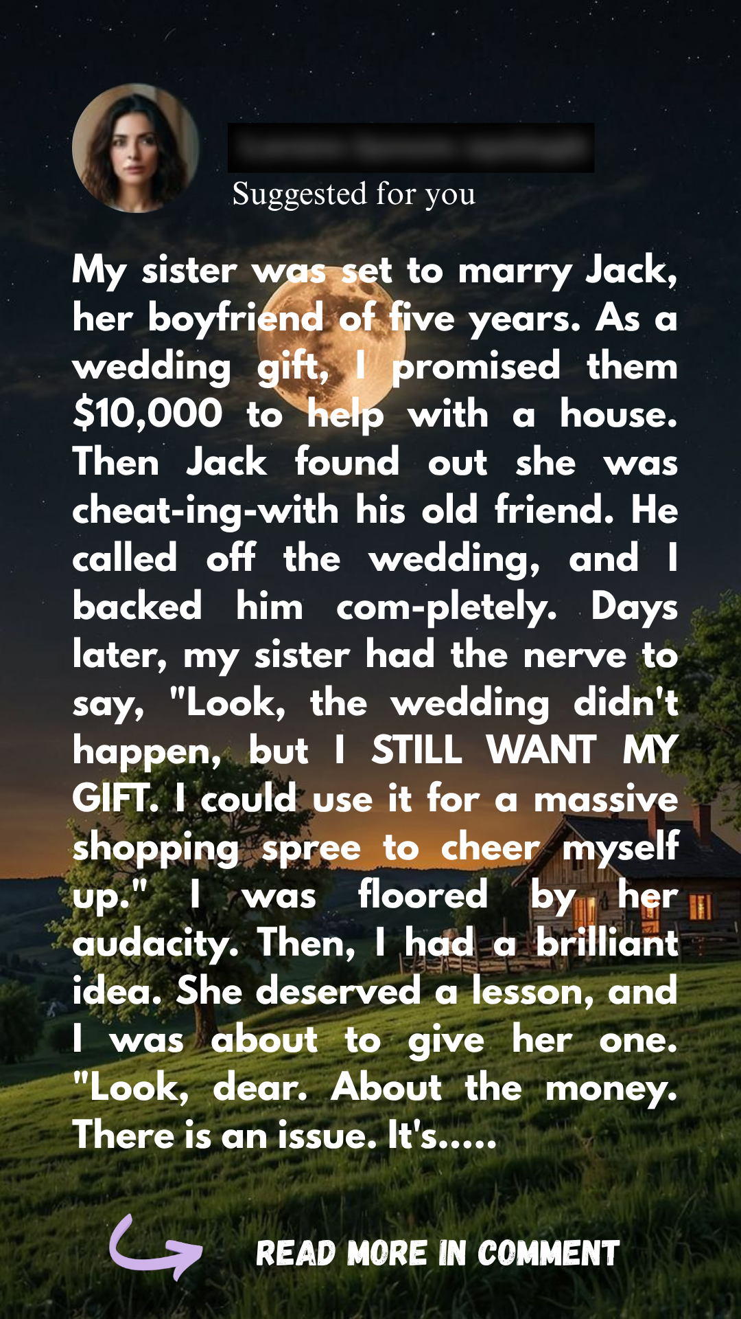 When Davina promised her sister Clara $10,000 for her wedding, she never expected betrayal to cancel the big day. But when Clara demands the money anyway, despite her role in the wedding debacle, it’s time for Davina to set her straight. A lesson in loyalty, consequences, and unexpected twists you don’t see coming…