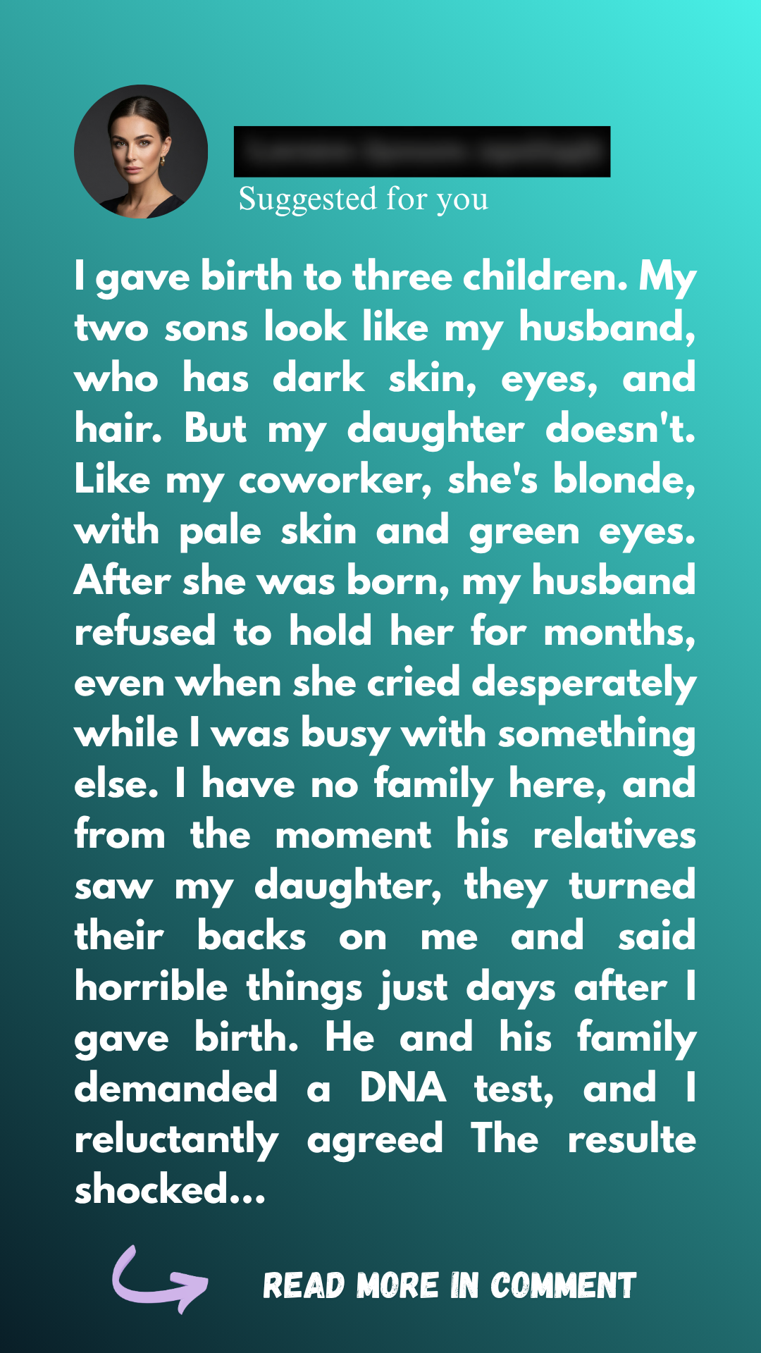 He didn’t believe Mya was his because she looked different — pale skin, green eyes, features unlike his or our boys’. And worst of all, he pointed to my coworker George, insisting Mya resembled him. I was stunned. I’d never cheated — and had always been faithful.