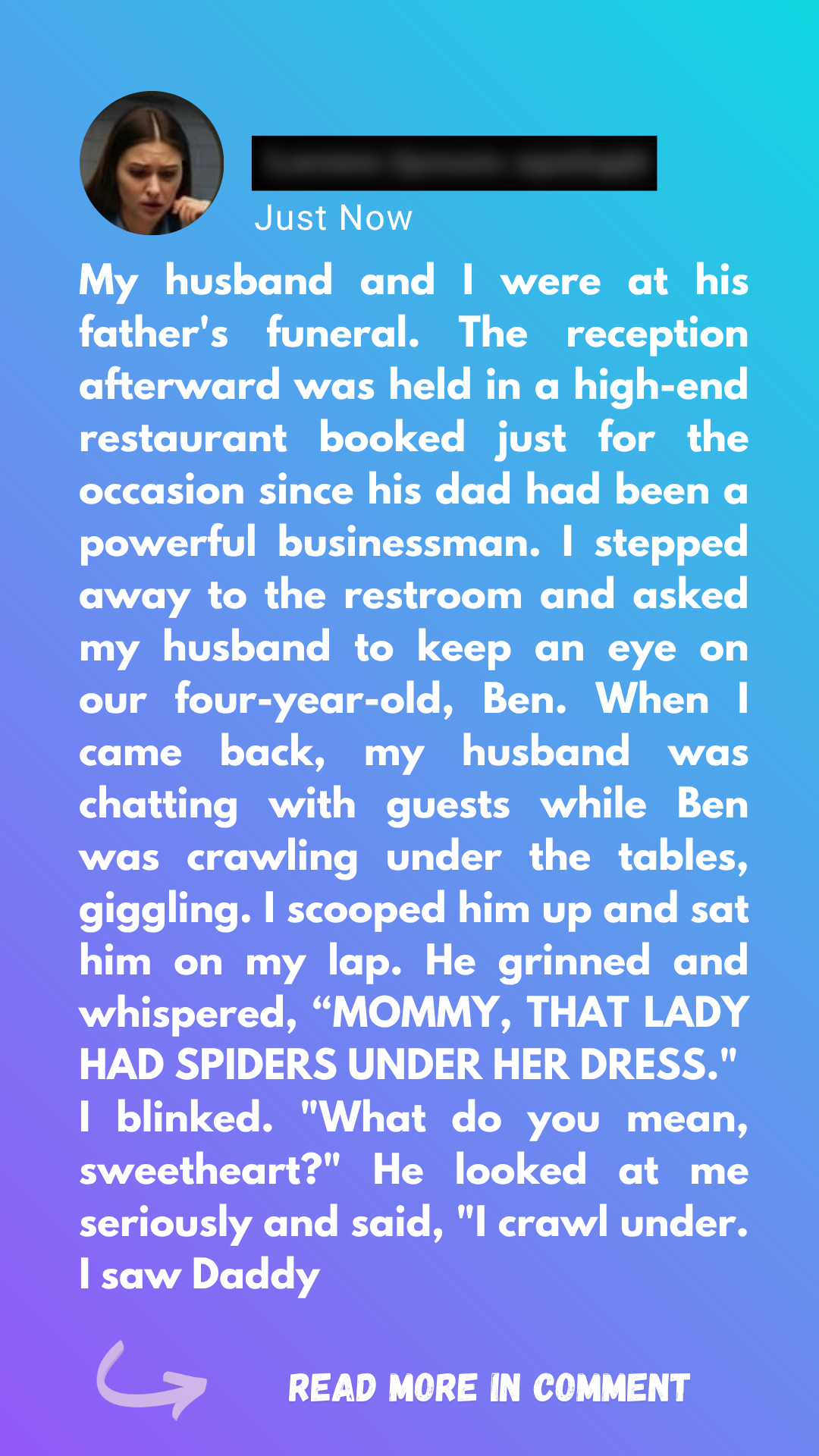 They say children see the world without filters. Ben saw the truth that day under the table at the funeral. And though it broke my heart, it also set me free.