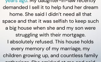 I refused to sell the home where my family’s memories live so my daughter‑in‑law could buy her dream house. It cost me dinners, not my history. Read More