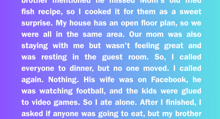 My Brother’s Family Ignored the Dinner I Spent Hours Cooking — Then Our Sick Mom Walked Out of Her Room
